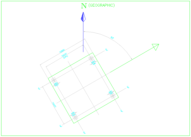 Geographic detail of tower dwg file with dimension of tower area and angle view of tower area and positional view of area of tower.