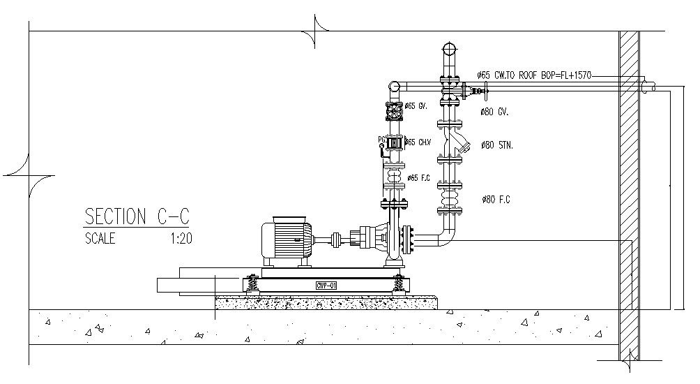 Roof piping machine detail including section plan