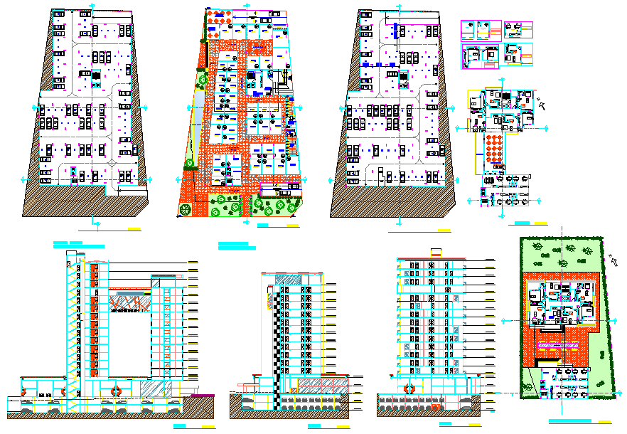 Residential building, office building architecture layout plan with detailing, sectional plan, structural plan, construction plan, sectional elevation of individual floor.