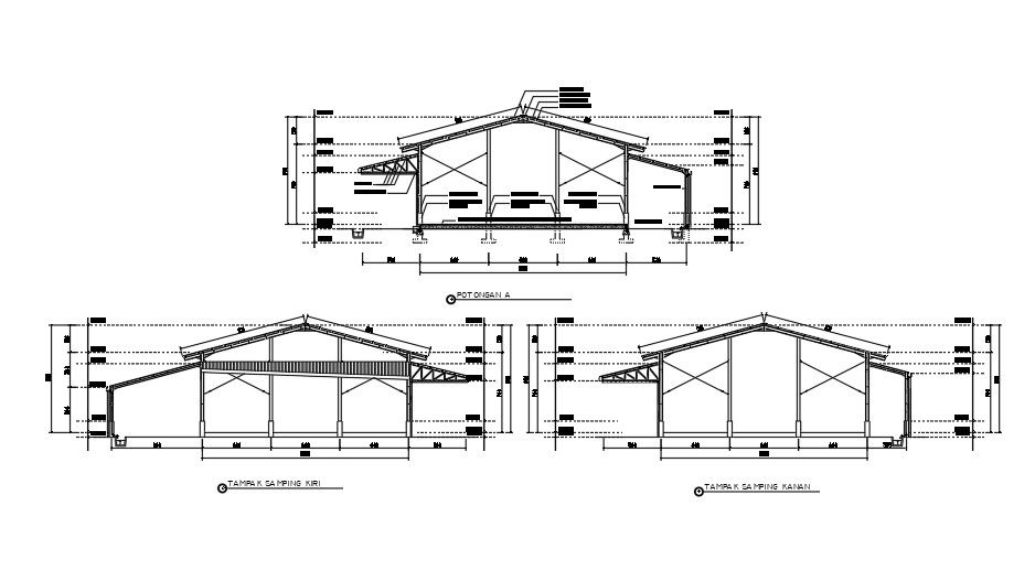 This Architectural drawing is Elevation and section of front side and back side of a factory site. In this drawing the detail dimensions are mention for understanding the design properly. An elevation is an orthographic projection of an object or construction on a vertical picture plan parallel to one of its principal faces.. In simpler terms, an elevation is a drawing which shows any particular side of a house. A sectional view or a section looks inside an object. Sections are used to clarify the interior construction of a part that cannot be clearly described by hidden lines in exterior views. By taking an imaginary cut through the object and removing a portion, the inside features may be seen more clearly. For more information and knowledge download the drawing file.