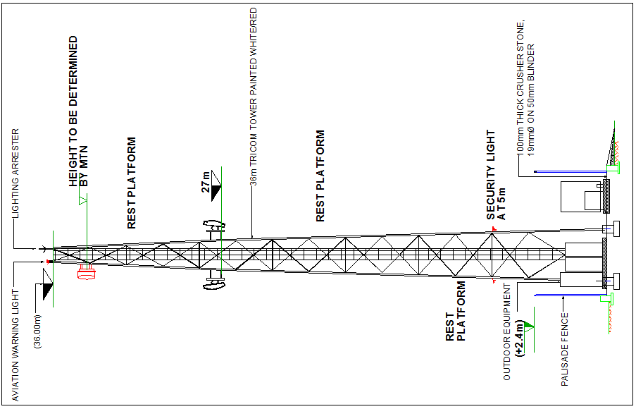 Tower slab block view with foundation detail dwg file with view of tower height,lighting