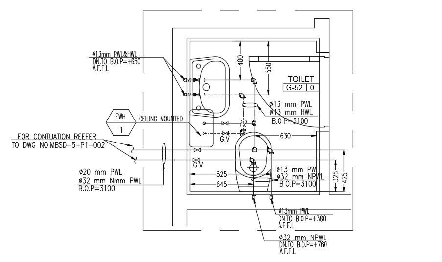 This Architectural Drawing is plan of Fitting and fixtures of toilets. a Part (Such As a Sink, Toilet, Faucet, Etc.) That Is Attached to a System of Pipes That Carry Water Through a Building. Typically, 3-inch pipes carry the water to the toilet, but a 4-inch pipe may be used to move wastewater out of a house to a sewer or septic tank. The drain pipe connects to the flange, which mounts the toilet itself, and this flange is usually built to connect to 3-inch, schedule 40 toilet drain pipe. A plumbing fixture is a part that is connected to a plumbing system and carries water through a building. The most common plumbing fixtures are bathtubs, sinks, showers, tubs, toilets and faucets. While a fixture can be fixed into walls or the floor, a fitting is an item that can be hung by a hook, screw or nail. For More details and knowledge download the drawing file.