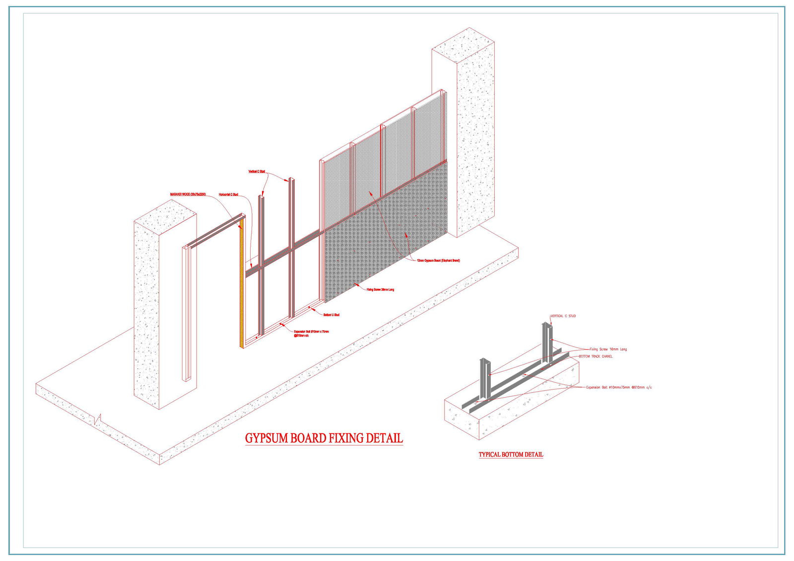 Here is the complete detail available with this drawing regarding drywall partition i.e. used on appartment building projects