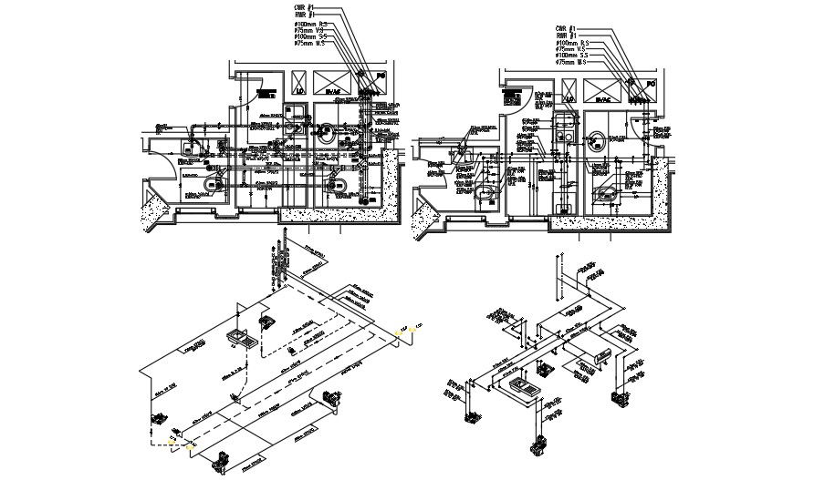 Toilet plumbing details of commercial building.