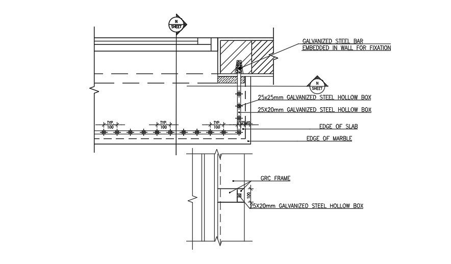 This Architectural Drawing is Galvanized steel hollow box. Mild steel box section can be used for a huge range of various applications including construction, frames, structures, security grills, transport, and general fabrications. The term Hollow Structural Sections (HSS) refers to high-strength welded steel tubing used as structural elements in buildings and other structures and a variety of manufactured products. It is produced in round, square and rectangular shapes and a broad range of sizes to the ASTM A500, A1085, and A1065 specifications. For more information and details download the drawing file.