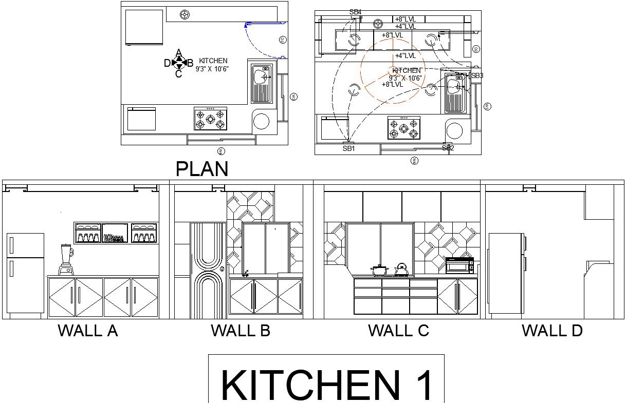 Modern kitchen designs have open floor plans stretching the entire length of the kitchen layout. They sometimes have distinct zone divisions which are subtly defined by changes in color or materials. This minimalist approach to layout is what achieves a simple and elegant look , modern design is all about creating clean, open, functional, and calming spaces, with plenty of room for character and personal style. And that also happens to the recipe for a perfect kitchen.in this plan shown interior and different elevation of drawing with interior details. for more details download this file .