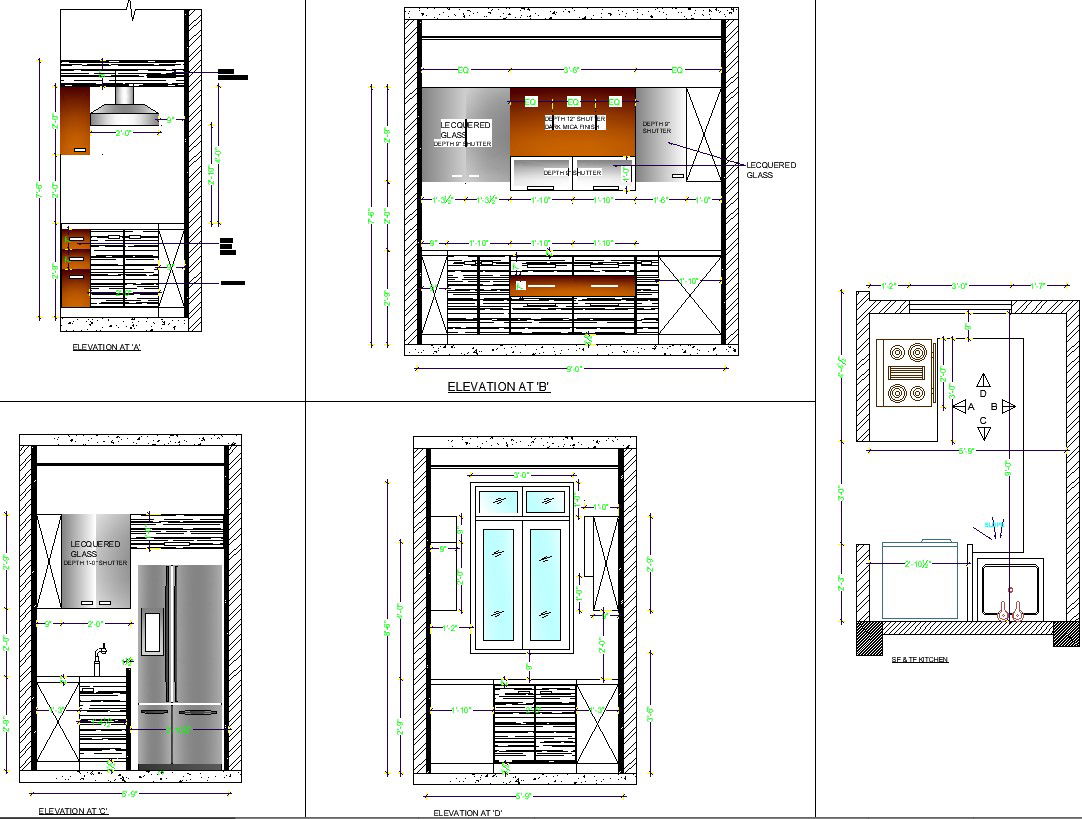 Here kitchen elevation shown with interior of kitchen including kitchen designs have open floor plans stretching the entire length of the kitchen layout. They sometimes have distinct zone divisions which are subtly defined by changes in color or materials. This minimalist approach to layout is what achieves a simple and elegant look , in this drawing also mention dimension of kitchen space and area . for more details of kitchen elevation download this file.