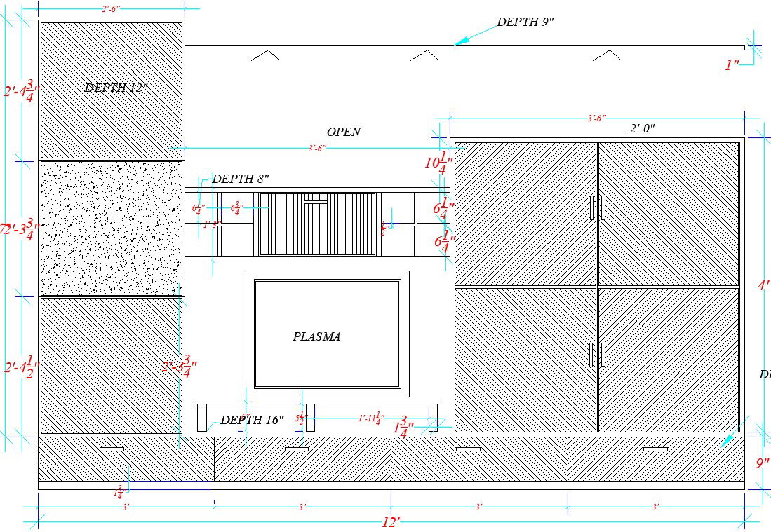 Here Modern plasma tv unit including TV units are made of termite-resistant solid wood, engineered wood, glass, or metal. 36 inches is a good height for a base, while 20 to 24 inches is a good depth for your media cabinet in which you can keep your TV box, play station. also in drawing shown dimension details in elevation for more details download this file .