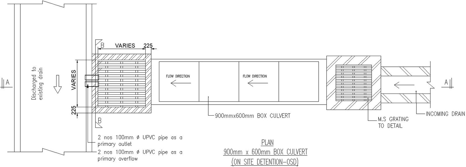 Here Box Culverts are used for drainage purposes. They are also used to make tunnels and used for storage as well as material handling. Some culverts act as bridges. They easily accommodate both pedestrian and vehicular traffic Box culverts are in rectangular shape and generally constructed by concrete including box culvert size is 900mm x 600mm , ms grating details , 2 nos ,10mm upvc pipe as a primary outlet , 2 nos ,10mm upvc pipe as a primary overflow for more details download this file.
