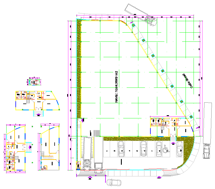 Industrial Warehouse, architecture layout plan with detailing, section plan, structure plan, construction plan.