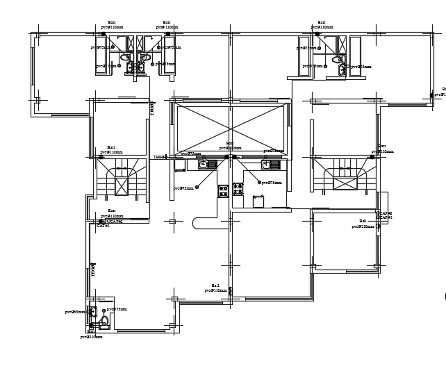 21x20m first floor house plan sanitary layout cad drawing is given. On this first floor, the water lines are provided to the kitchen, and bathroom. 110m PVC line is provided to the kitchen. 75mm PVC line is provided to the bathroom. PVC 55mm pipe is provided to the attached bathroom.