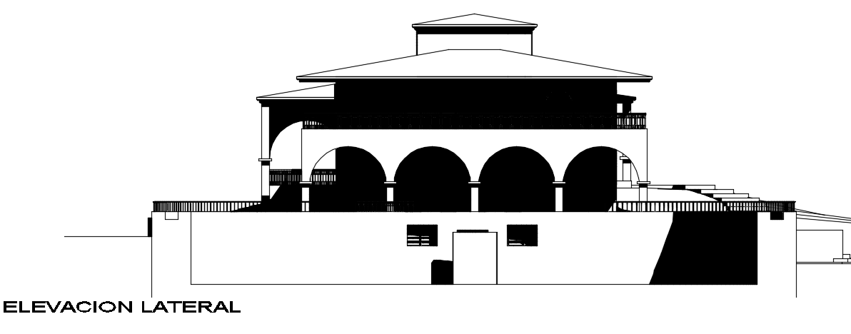 The lateral elevation view of the 36x13m house building is given. This is G+ 2 residential building. This elevation drawing is given with the 1:100 scale.