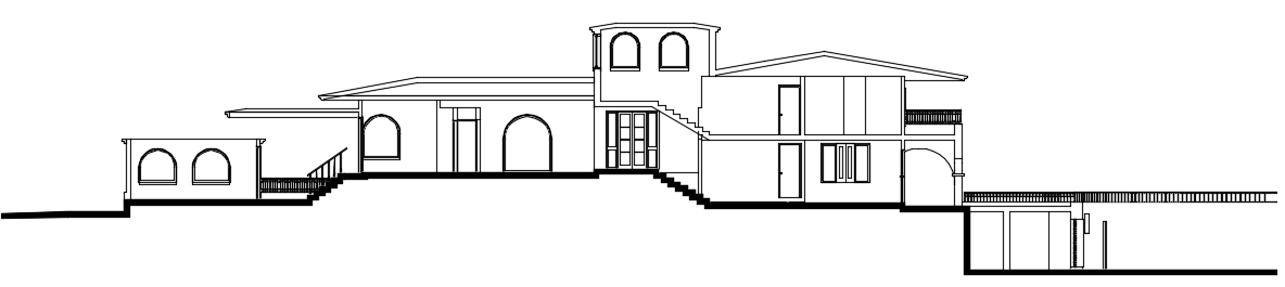 36x13m bungalow house building section cad drawing is given. This is three story villa building with 6bhk.