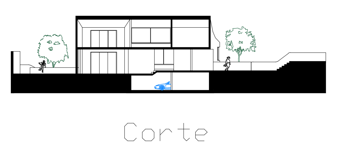 The back side cut section view of the 3bhk bungalow house building