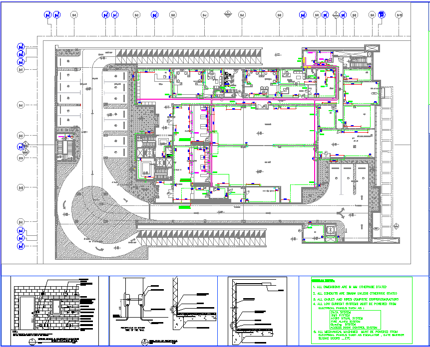 The architecture layout plan of power plant with detailing, section plan, brief description detail and elevation design.