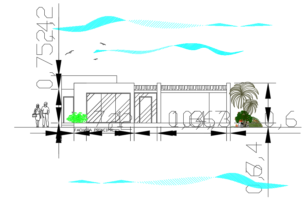 15x13m house building main elevation cad drawing is given in this model. This is a single story house plan with 3bhk including maid room. Each bedroom is provided with the attached bathroom. The total height of the building including 4.15m. The height of two floors are 3.55m.