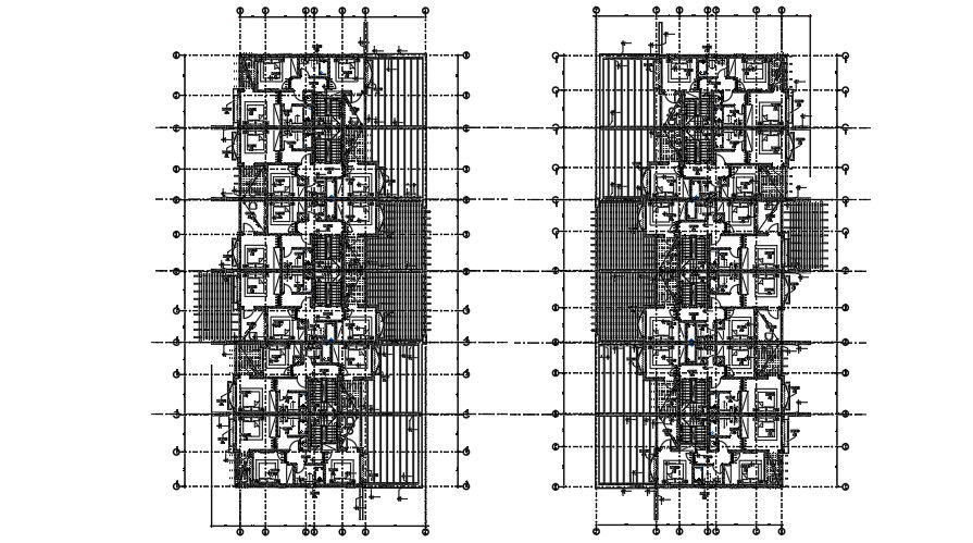 This Architectural Drawing is of AC layout plan of a apartment building. In a 10 feet high room, a split type AC should be installed at 7 -8 feet for the best cooling performance. For a window type AC, the best height is 3-4 feet from the floor. If you are fixing the AC very close to the wall or in an airtight room it will trip due to high head pressure, as heat dissipation can't happen. So, it's important to ensure that each air vent is oriented so that the middle section directs air toward the rest of the room. Otherwise, since ceiling vents are typically situated around a room's perimeter, the air would simply be directed toward the closest wall. A split AC's indoor unit can be fit on a beam without any issues. The gas/drain pipe provision if not provided in the beam can be taken from below the beam but would be visible. For more details and information download the drawing file.