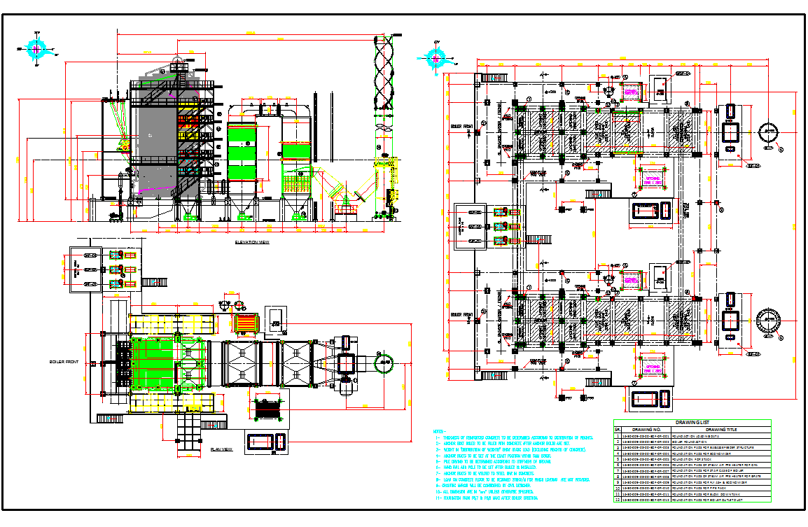 The architecture layout plan with brief description detail, section plan and elevation design of Industrial Gas Plant project.