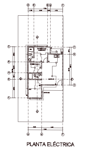 7x10m house plan electrical drawing 2d cad model is given in this file. This is a single story house building. In this drawing, the switch point, fan point, AC point, and light points are mentioned.