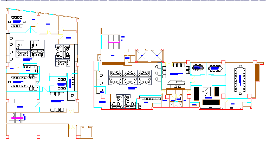 Plan of uday tower dwg file with meting room,work station,toilet,dining area,network room,reception,showroom,kitchen,prayer room,waiting room and lobby.