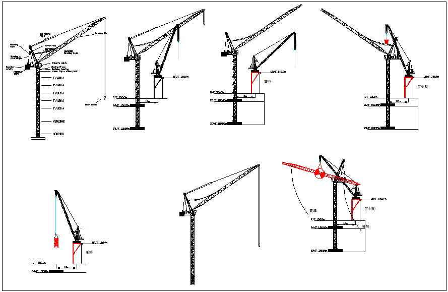 Tower crane dismantle view dwg file with view of crane and its part and step view