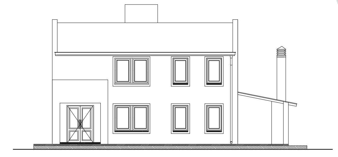 The main elevation view of the 15x14m house building is given in this file. This is G+ 1 house building. The main door, double window, and single window is presented.