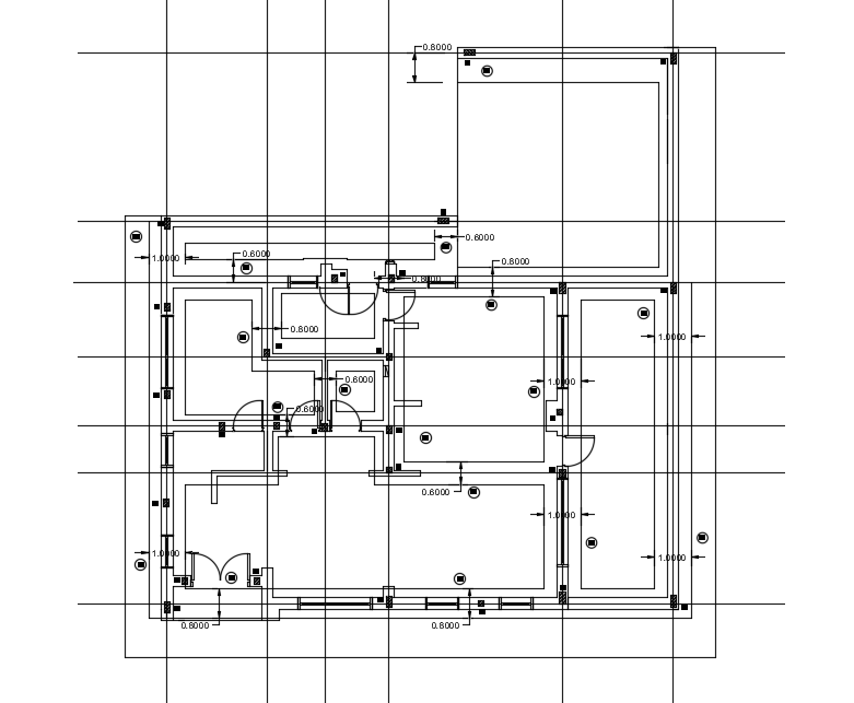 Here, 15x14m house plan column and foundation layout with center line marking drawing is given in this file. Each column is mentioned my K, and foundations are mentioned by Z.