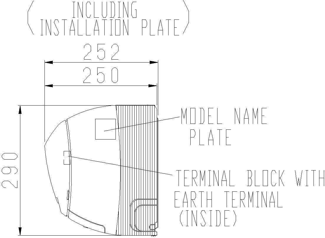 Side Elevation of AC 290x252 including wall mounted plate.