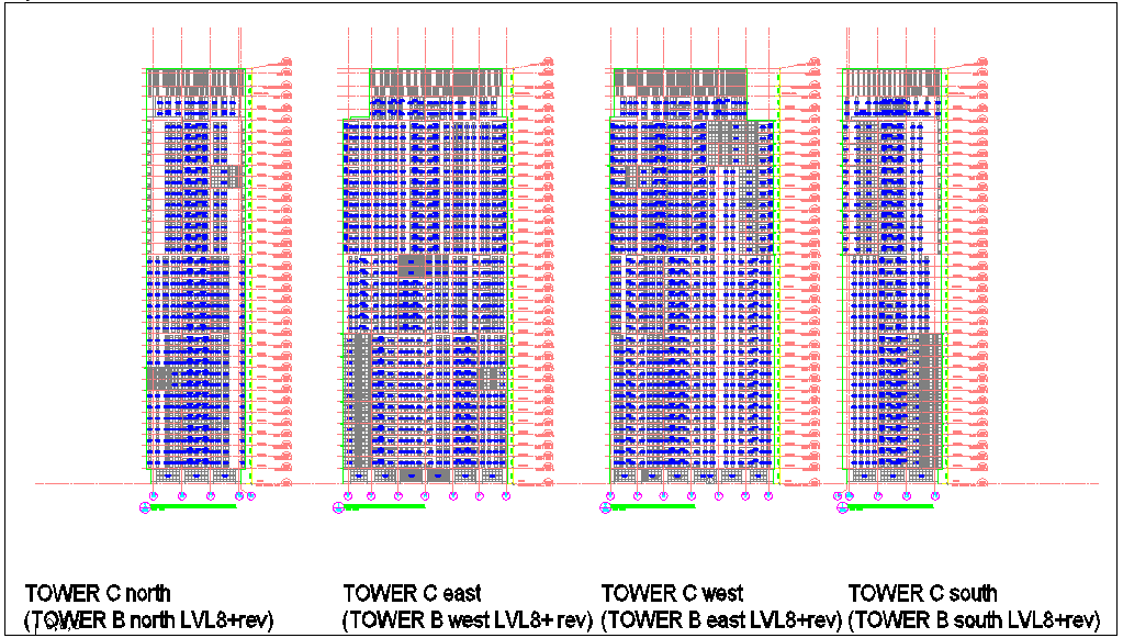 Window view with number in tower design dwg file with view of floor and dimension