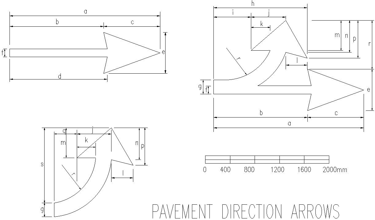 Pavement direction arrows details cad file.