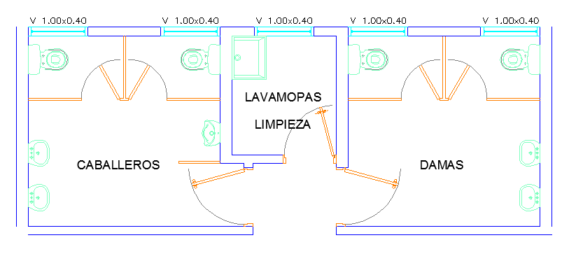 Toilets for Ladies and Gentlemen 860x320m, floor plan.