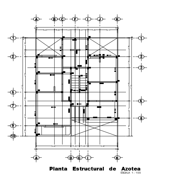 10x12m roof structural layout cad drawing is given in this file. Here, beam, and column location cad drawing is given in this drawing.