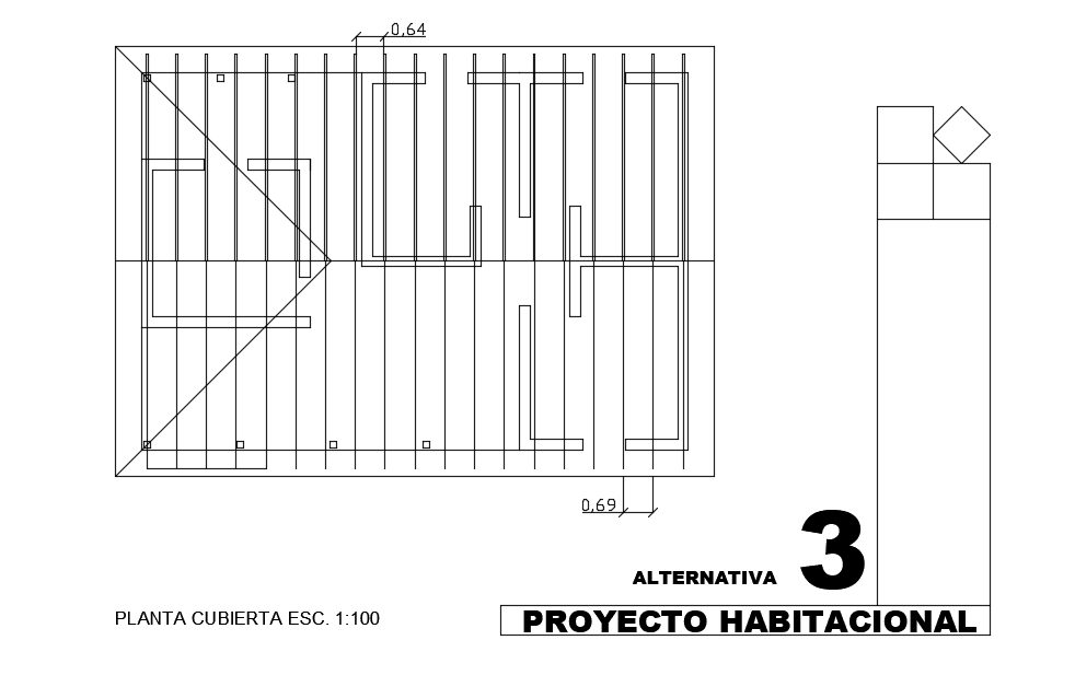 12x8m house roof layout AutoCAD 2d model is given in this file. This is a single story house building. The left and right side, A type roof is provided.