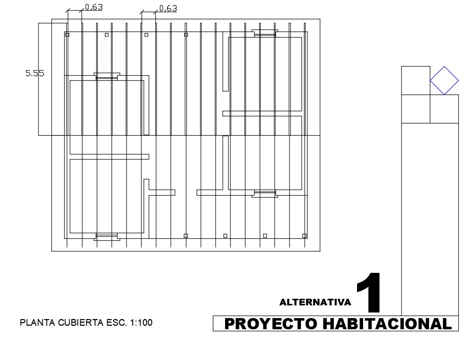 11x10m bedrooms plan roof layout with making cad drawing is given in this file. This is a single story building. Here, roof covering detail drawing is given.