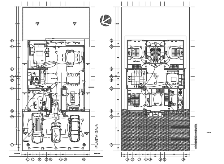 10x12m house plan ground and first floor electrical layout is given in this file. Here, fan point, switch point, wire direction, AC unit, spot light, tube light and chimney lines are provided.
