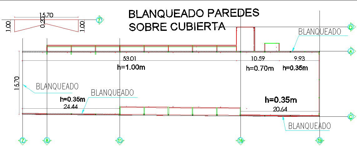 This architectural drawing is AutoCAD drawing of whitewashed walls over deck. There were given length of wall is 73.50m. Height of the wall is 15.70. For more details and information download the drawing file.