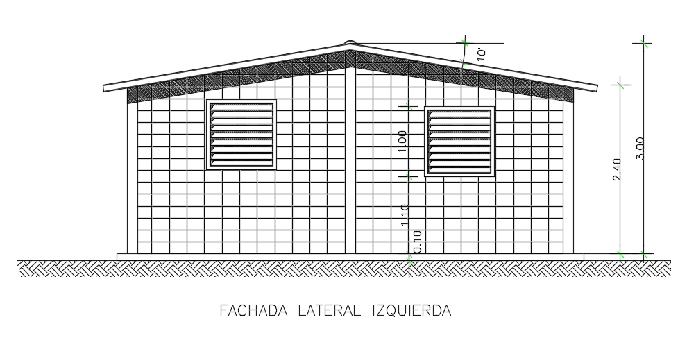 10x7m house building lateral elevation CAD DWG drawing file is available in this model. This is single story house building with 3bhk. The total height of the building up to roof level is 3m. The height of the floor level is 2.4m. Here, the guest bedroom window, and master bedroom window is presented.
