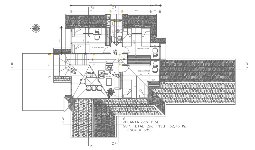 23x12m bungalow house plan first floor layout 2d AutoCAD drawing is given in this file. Here, three bedrooms are available. The common bathroom only available on this floor. The living room, kid’s bedroom, guest bedroom, master bedroom, and common bathroom is available in this floor. The length and breadth of the first floors are 9.8m and 9m respectively.