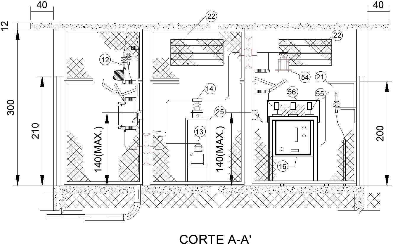 This architectural drawing is 2D drawing of Cross section AA' of electric power supply system. In this drawing there were the height of the section is 300. Thickness of slab is 12. Height of the switch board is 140 maximum. In this drawing all measurements are in cm. For more details and information download the drawing file.