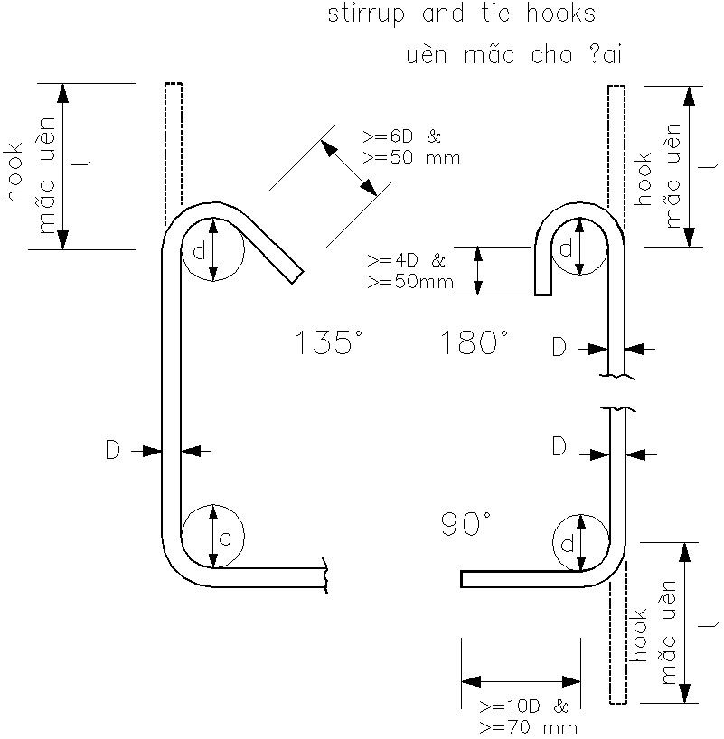 This architectural drawing is Design of stirrups and tie hook. In this drawing there were two drawings are given. In first drawing hook is bend at 135 degree and 90 degree, in second drawing hook is bend at 180 degree and 90 degree. For more details and information download the drawing file.
