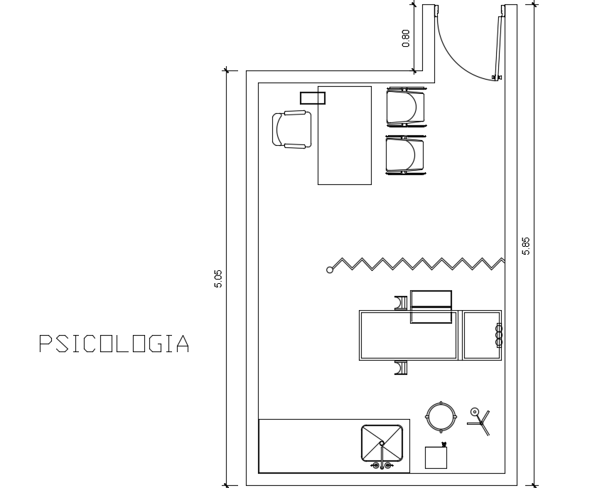 5050x3300mm psychology consultation room 2d drawing