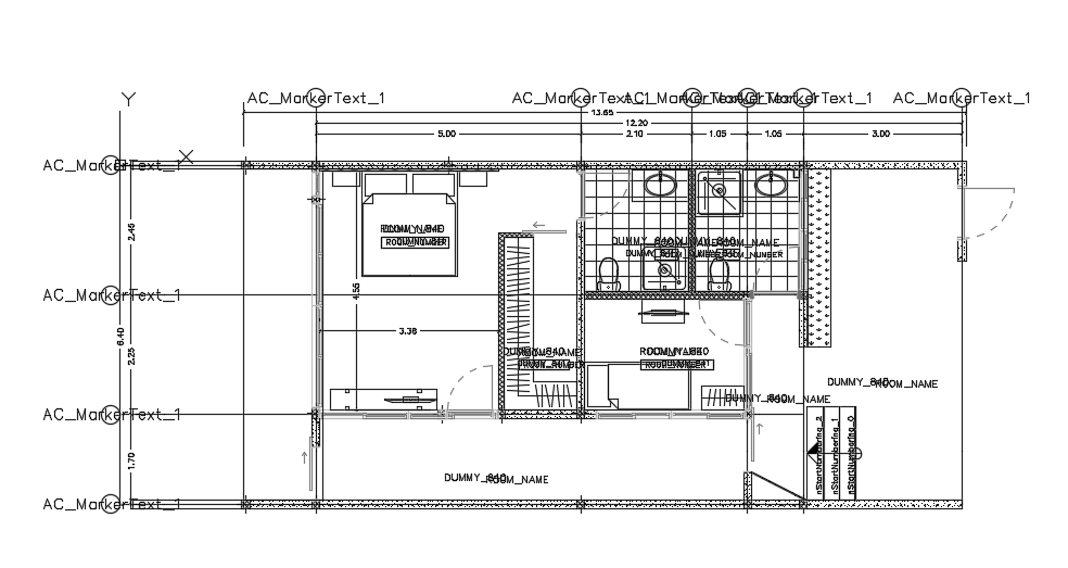 14x6m beach house plan drawing is given in this file. This is a single story building. In this plan, the master bedroom with the attached bathroom & walking closet, porch, patio, swimming pool, and common bathroom is available.