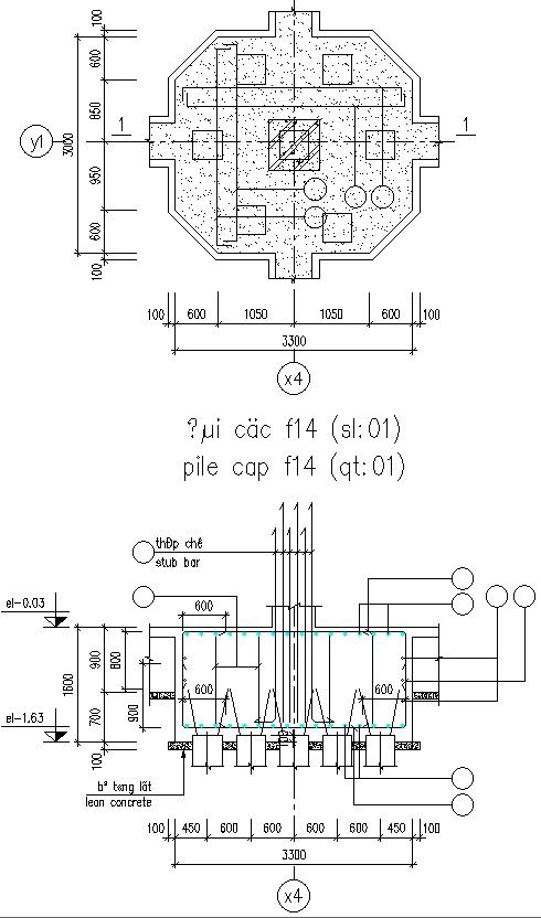 This Architectural Drawing is AutoCAD 2d drawing of pile cap working Drawing. Piles are used to carry the load of the structure deep into the ground, and pile caps form the solid foundation on which the piers are then built. Pile caps create a stable foundation and offer a larger area for the distribution of the building load onto the piles. They act in a similar way to piled raft foundations, where a concrete slab rests on soil which may be susceptible to movement, above a group of piles. For more details and information download the drawing file.