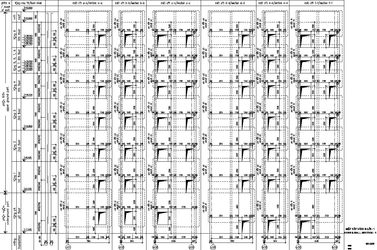 Core and wall section including a technical drawing that lets you see inside a wall. Rarely will a wall be made of just one solid material and core and wall section provide staircase , elevator , shaft and pipe and also shown mechanical device or wiring and pipe also shown excavation and structure pipe for more details of Core and wall section download this AutoCAD file , 2d drawing and dwg format.