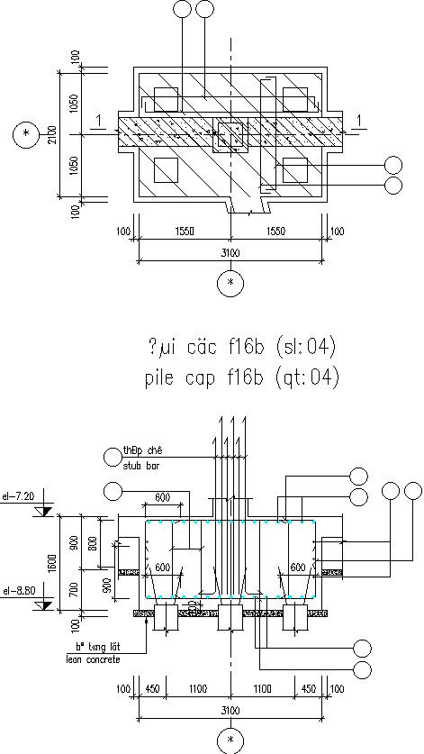 This Architectural Drawing is AutoCAD drawing of Detail Drawing of construction. Pile foundation , a kind of deep foundation, is actually a slender column or long cylinder made of materials such as concrete or steel which are used to support the structure and transfer the load at desired depth either by end bearing or skin friction. Pile foundations are deep foundations. A stub column is a type of column whose length is short and baseless which means do not have a foundation and footing as its rests on a beam or slab. It acts as a point load on the beam. A stub column does not fail by buckling because of its short length and It is constructed between one floor only.Lean concrete: Its role is to provide the uniform surface to the foundation concrete and to prevent the direct contact of foundation concrete with the soil. For more details and information Download the drawing file.