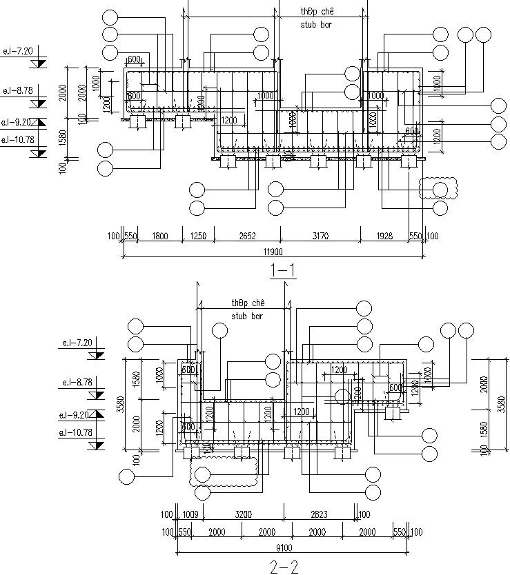 This Architectural Drawing of AutoCAD of Sectional plan of Pile cap. All piles shall be reinforced with not less than 4 longitudinal steel bars having an area of not less than 1.25 percent and not more than 4.0 percent of the gross cross-sectional area of the pile. The materials used are long steel bars with longitudinal protrusions between the piles held in shape by thinner tie wires. Once this steel mat is laid, timber is attached around the perimeter to contain the wet concrete mixture. For more details and information download the drawing file.