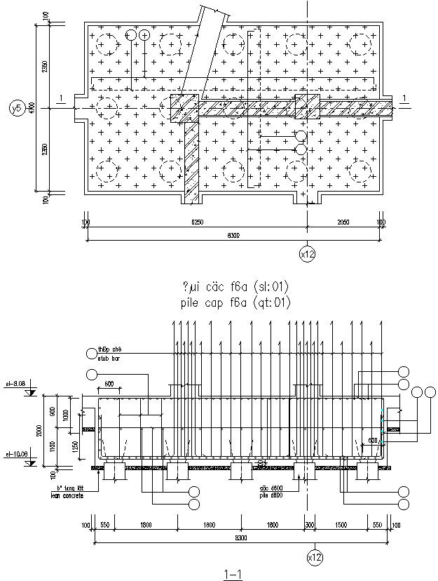 Concrete cover of reinforcement layer for pile cap and stub column.