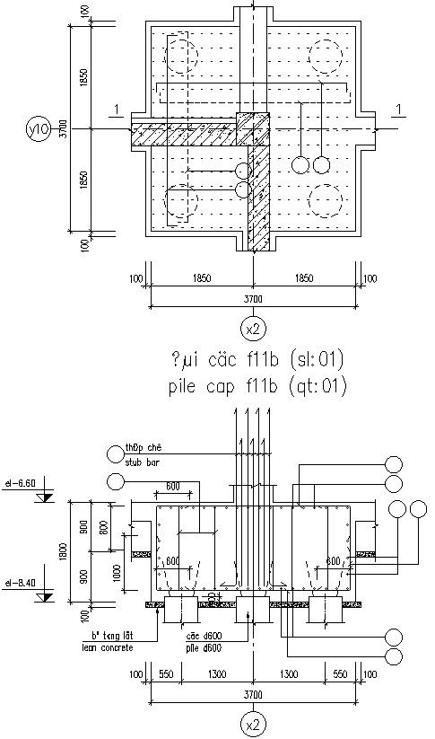 Reinforcement detail drawing of lean concrete.