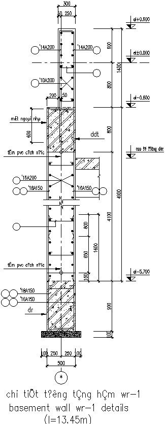 This Architectural Drawing is AutoCAD 2d drawing of Basement wall details ( l = 13.45m). Basement walls and design differ from other structural walls because in the basement inside of wall have living space and earth filling on the outside of wall i.e. why these are structurally designed as retaining walls to overcome the lateral pressure of outside filling of soil/earth. For more details and information download the drawing file.