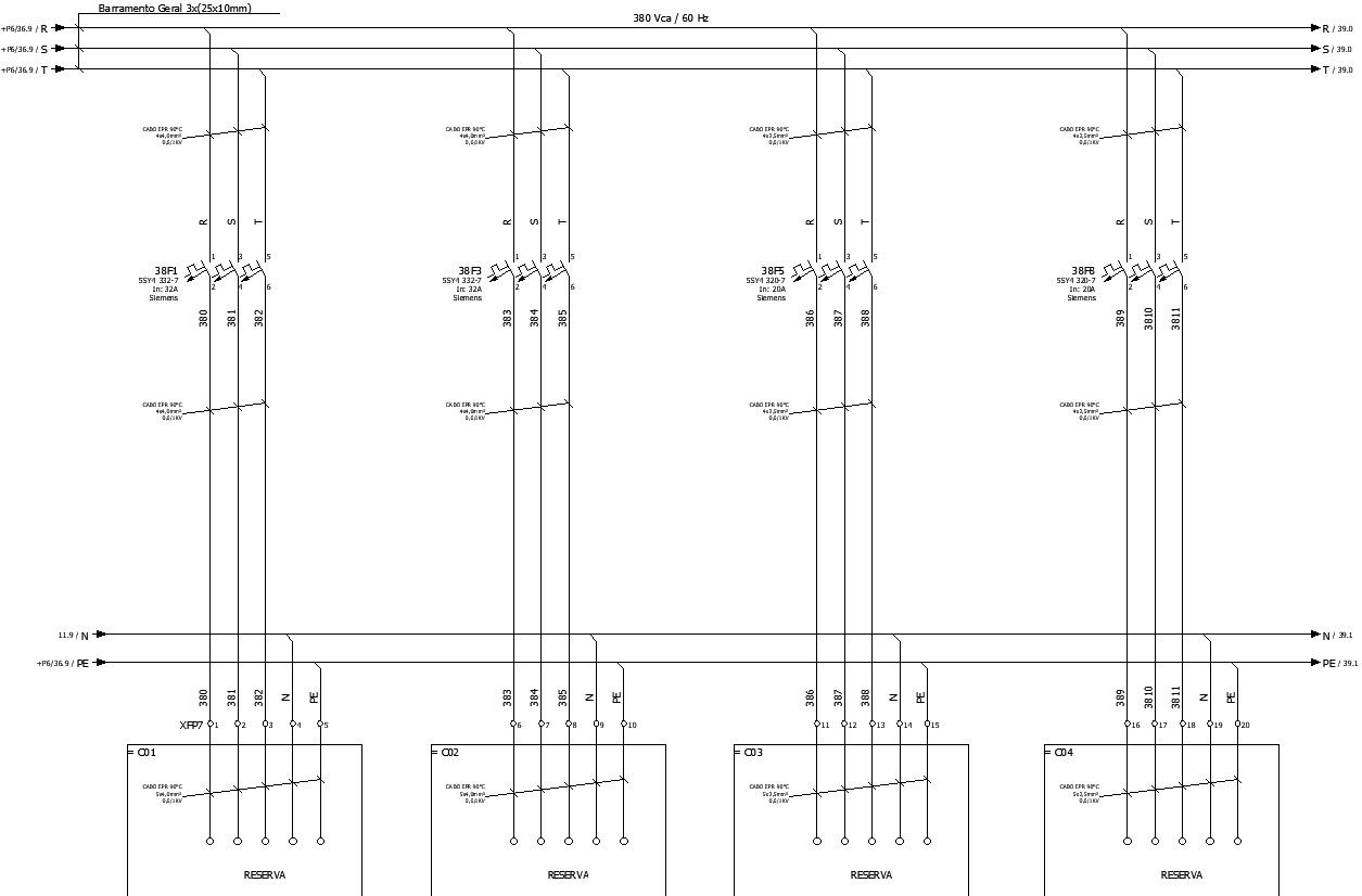 Power diagram- three phase feeder branches